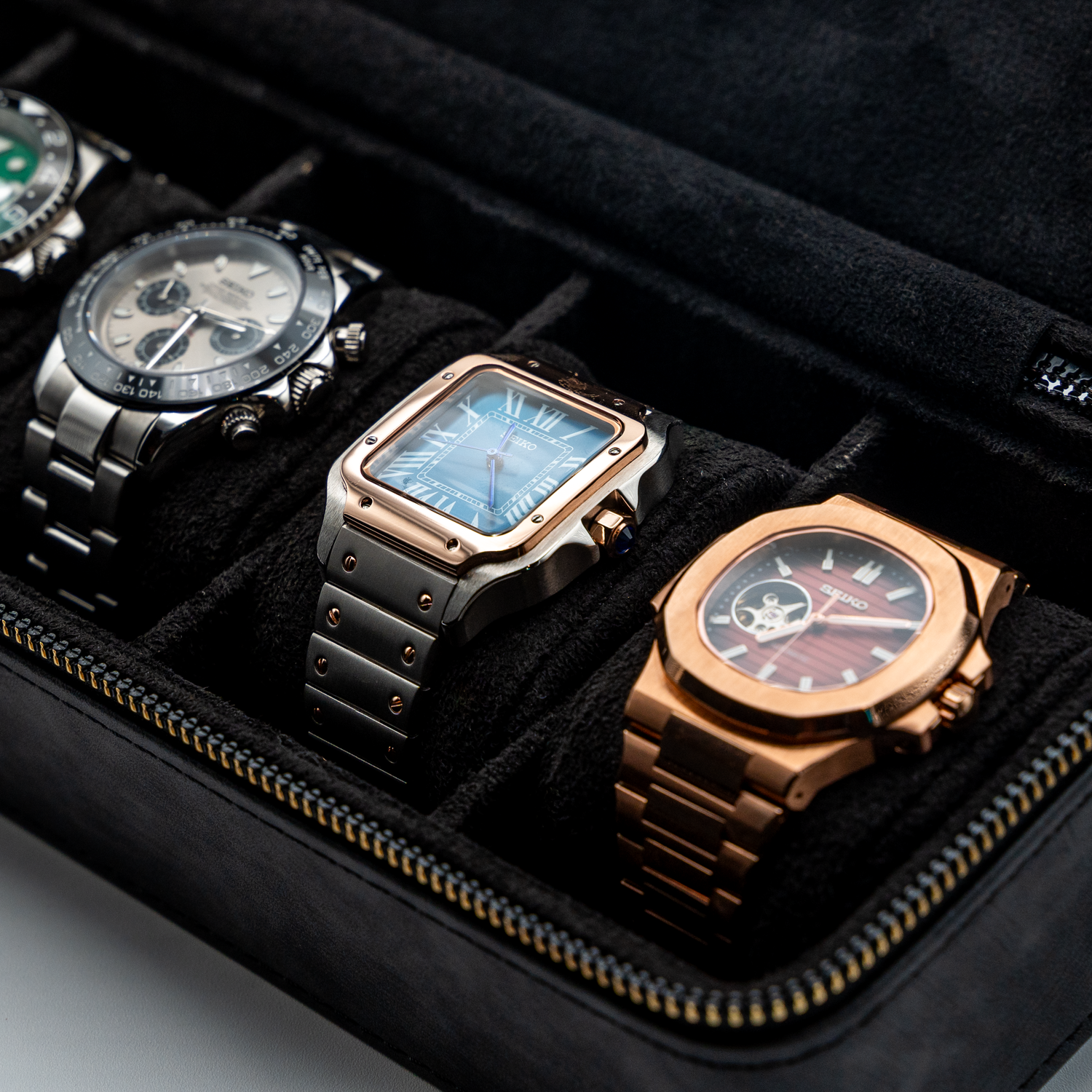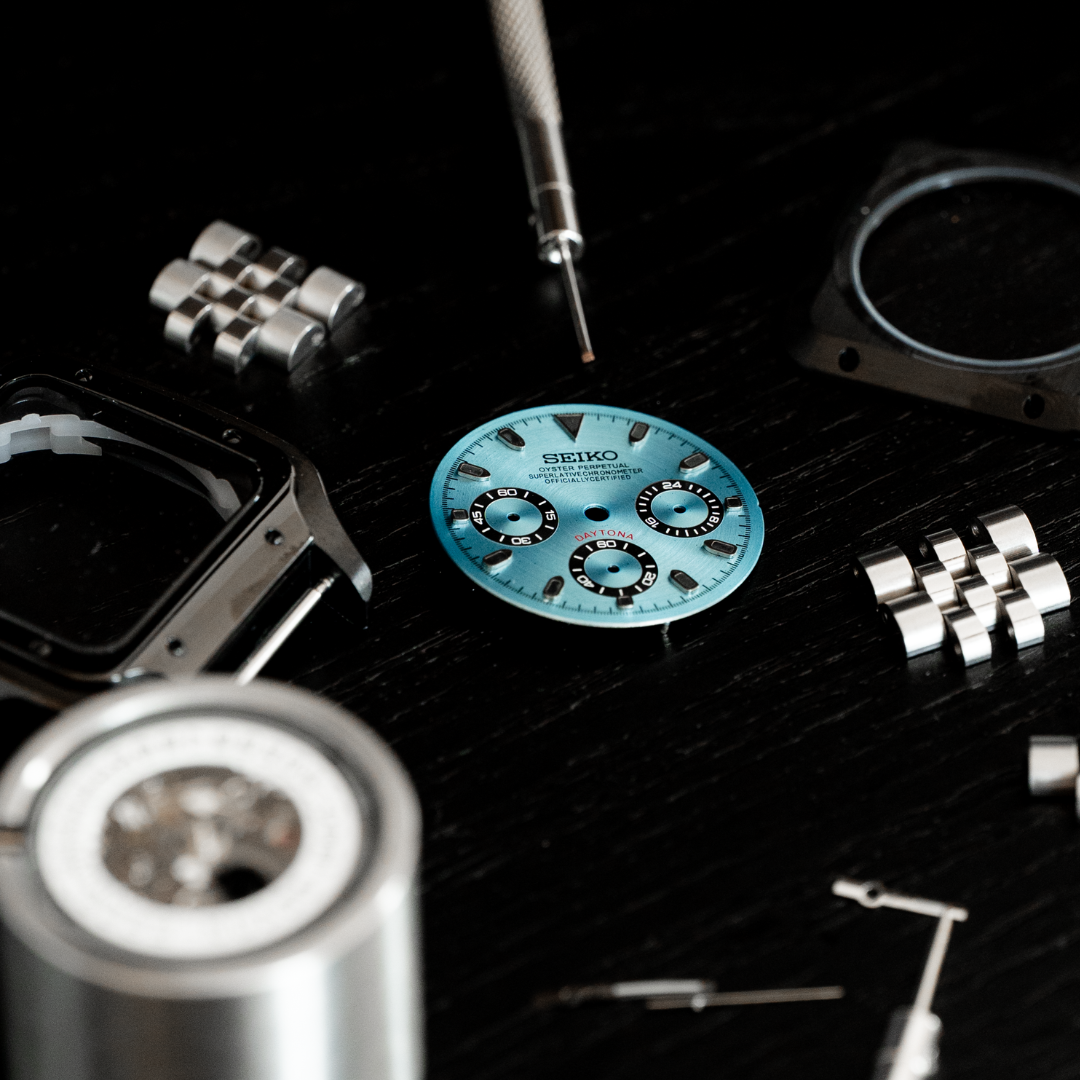 A Seiko Mod is a custom-built watch, hand-assembled from a prestigious Seiko automatic movement and combined with high-quality aftermarket components — typically crafted from 316L stainless steel.