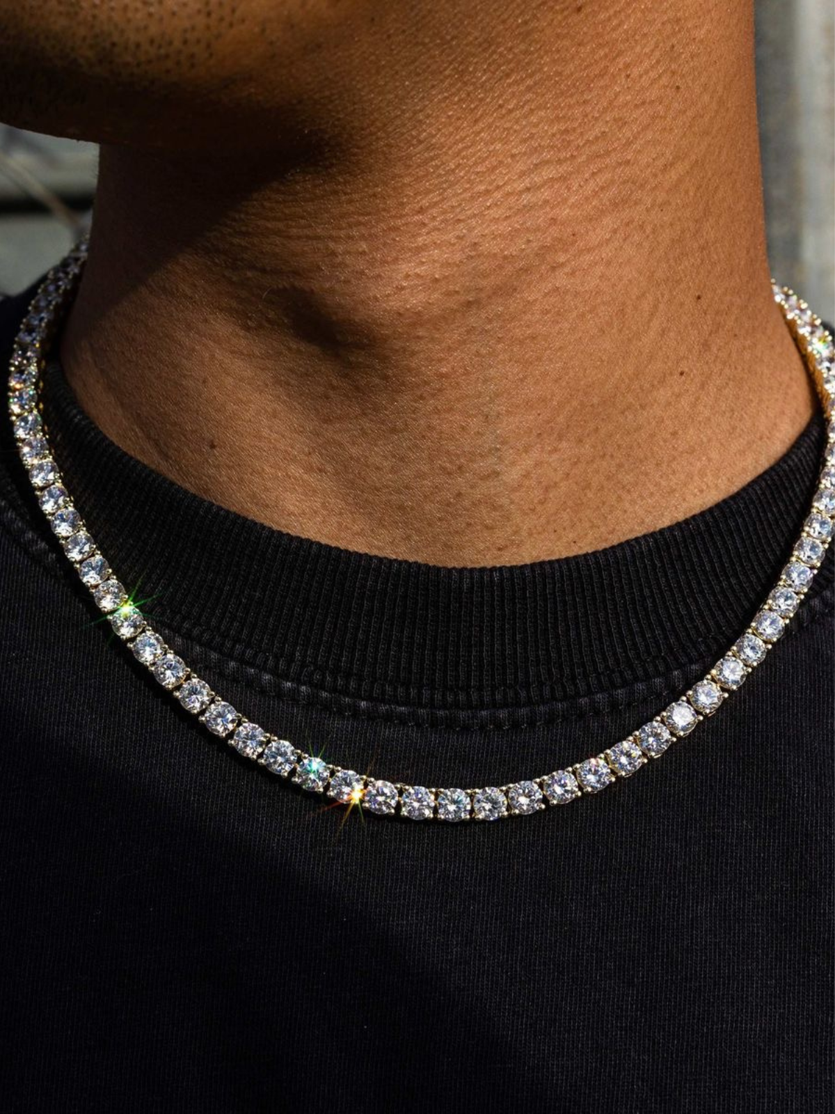 Engineered for everyday shine, this 4mm Tennis Chain blends clean design with bold presence. Each VVS CZ simulated diamond is hand-set to deliver maximum brilliance from every angle. Finished in premium white gold rhodium, it radiates a fresh, lasting glow. Built with 5x PVD protection for superior durability, it’s fully waterproof, tarnish-free, and hypoallergenic. Secured with a reinforced easy-clip clasp, this piece brings timeless luxury with modern edge.